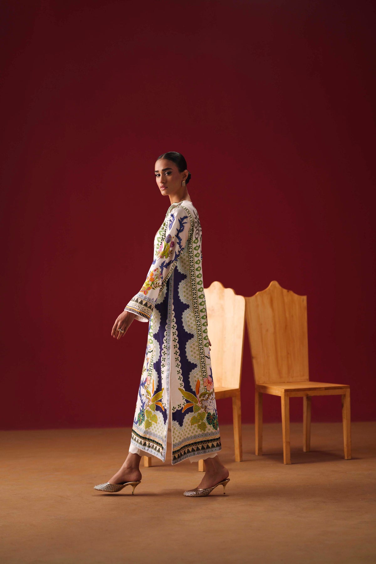 (Printed Shirt & White Trouser)
